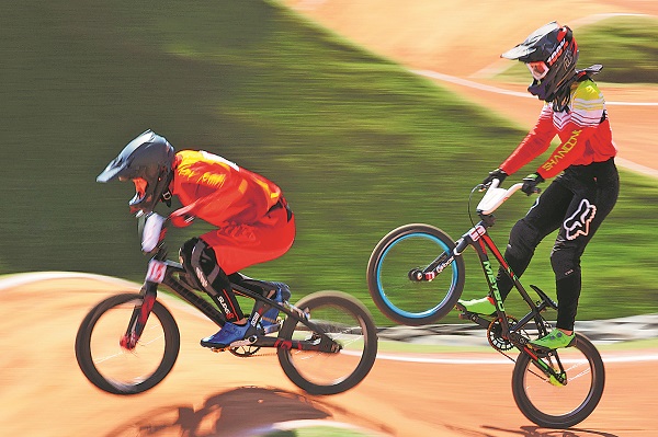 当日,第十四届全运会小轮车竞速赛在陕西西咸新区举行,山东队选手林浩超、苗润鹏包揽男子组冠亚军,甘肃队选手逯艳、张娅儒包揽女子组冠亚军。本报记者 吴凡 摄
