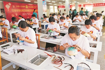 9月23日,选手们在青岛市即墨区即发集团有限公司参加首届发制品植发工技能大赛。