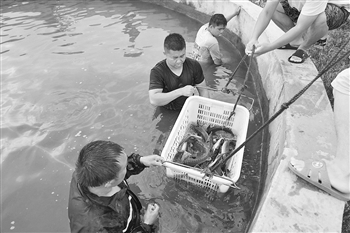 鱼塘捕捞忙