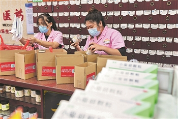 9月23日,药店工作人员在打包群众通过“康急送”云守护平台购买的药品。