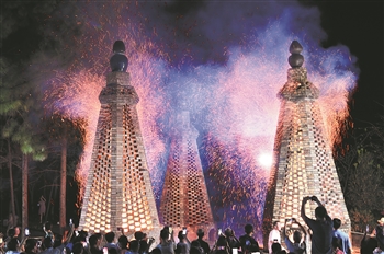 日前,江西南昌进贤西湖李家村举行了烧塔庆丰收活动。