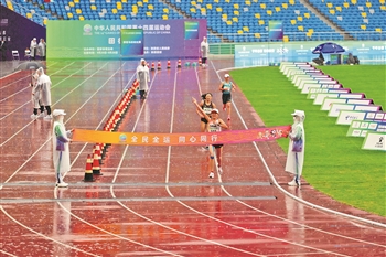 ◀云南选手张德顺以2小时32分31秒的成绩夺得女子马拉松冠军。本届全运会上,张德顺还获得了女子10000米金牌、女子5000米银牌。