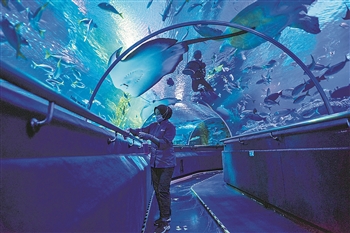 9月29日,一名工作人员在马来西亚吉隆坡城中城水族馆为重新开放做清洁。