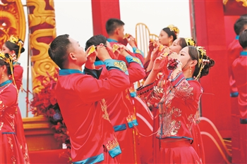 近年来,该集团公司积极为未婚青年职工搭建相识相恋平台,90多对青年因此喜结良缘,共有114对新人参加公司举办的集体婚礼。本报通讯员 王崇燕 杜巍巍 马勇 摄