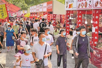 10月2日,游客在武汉市著名的小吃街户部巷休闲消费。