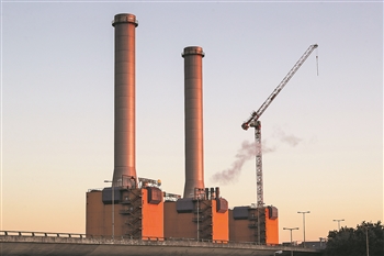 这是10月9日在德国首都柏林拍摄的一座正在拆除烟囱的热电厂。该热电厂为实现碳中和目标在拆除厂内的三座烟囱及锅炉房。新华社记者 单宇琦 摄