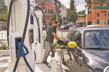 10月9日,一名男子在位于罗马的意大利国家电力公司设立的Enel X快充站为车辆充电。新华社记者 金马梦妮 摄