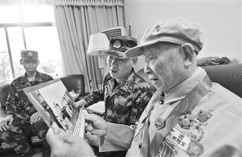 重阳节将至,武警湖南省总队郴州支队资兴中队组织官兵到驻地看望慰问87岁抗美援朝老兵张益思,聆听老人的战斗故事,感悟革命精神,传承红色基因,用实际行动表达对抗美援朝老兵的深深敬意。本报通讯员 李科 牟鑫斌 摄