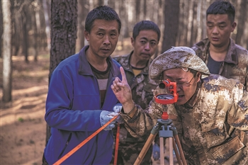 10月10日,塞罕坝四道沟营林区的工作人员正在对秋季作业区进行测量,保证施工质量。