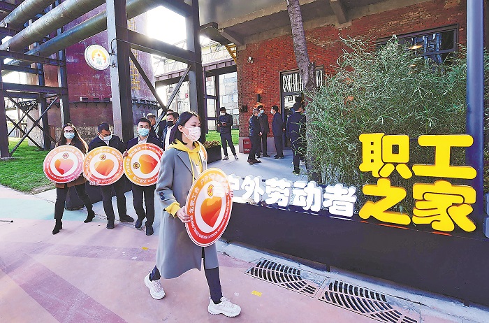 当天,北京市总工会为北京市工业国防系统的6家公共区域户外劳动者职工之家和7家暖心驿站授牌,并为户外劳动者代表送上“爱心包”。