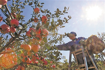 10月19日,果农在承德县八家乡于杖子村苹果基地采摘苹果。