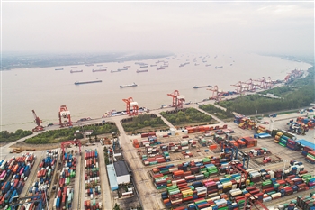 这是10月19日拍摄的武汉阳逻港一期码头(无人机照片)。