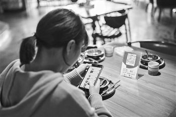 浙江杭州一家餐厅里,消费者扫码后自助点餐。锐图 摄/视觉中国