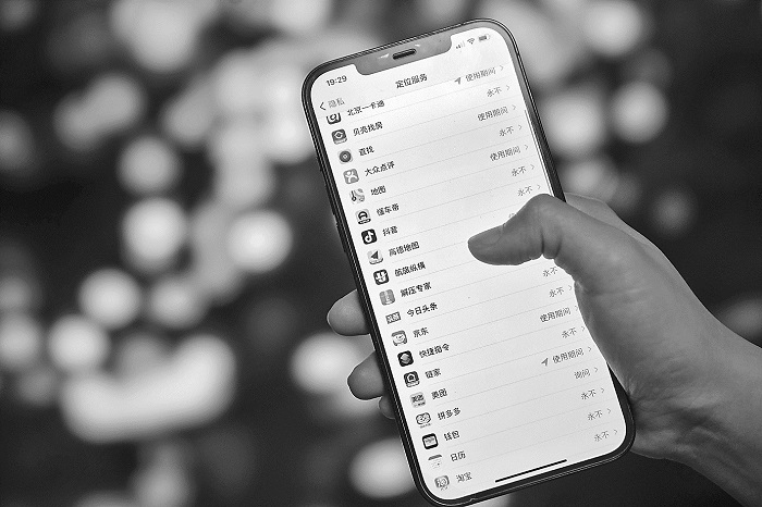 如今,大多数手机APP都有定位功能。本报记者 王伟伟 摄