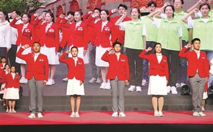 10月20日,志愿者代表在仪式现场宣誓。当日,4700多名第四届中国国际进口博览会志愿者通过线上线下结合方式宣誓上岗。其中近500名志愿者在进博会举办地国家会展中心(上海)参加宣誓。
