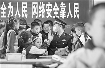10月11日至17日是国家网络安全宣传周。10月11日,安徽省六安市舒城县公安局网监大队联合桃溪派出所来到辖区中心小学,开展普法宣传活动。民警采取讲课、现场互动、发放宣传资料等多种形式,引导青少年学生正确使用网络、学会辨别网络信息真假,自觉养成良好的上网习惯。本报通讯员 王可海 摄