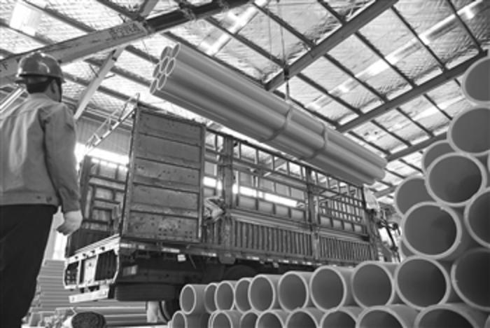 10月25日,位于江苏连云港市灌南沿海产业中小企业园内的一家管业公司,工人正在将一批电力保护管装车发货。近年来,江苏连云港市积极探索建立中小企业服务联盟,完善全市中小企业服务体系,打通中小企业政策落实的“最后一公里”,全力服务中小企业加速发展。
