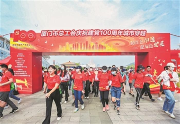 举办“访红色印迹,促绿色发展”厦门市总工会庆祝建党100周年城市穿越活动。(厦门市总工会 供图)