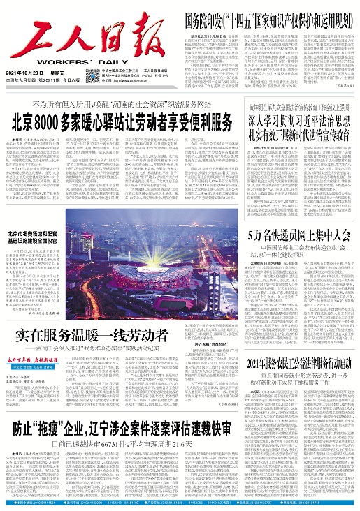 工人日报 2021年10月29日 星期一