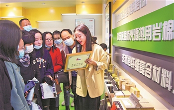 10月27日,四川省华蓥市华蓥山经开区帕沃可矿物纤维制品公司的工作人员向基层干部及农民工介绍玄武岩制品。
