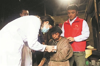 贵州省遵义市务川县茅天镇政府组织卫生院、商会人士积极开展“我为群众办实事”实践活动。活动中,医护人员上门服务,为老年人进行量血压、测血糖等身体健康检查,对老年人慢性病提供用药指导。罗川 摄