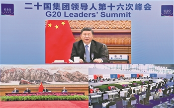 10月31日晚,习近平在北京继续以视频方式出席二十国集团领导人第十六次峰会。新华社记者 岳月伟 摄
