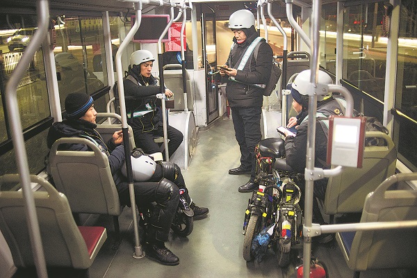深夜,北京公交车上的代驾司机。本报记者 王伟伟 摄