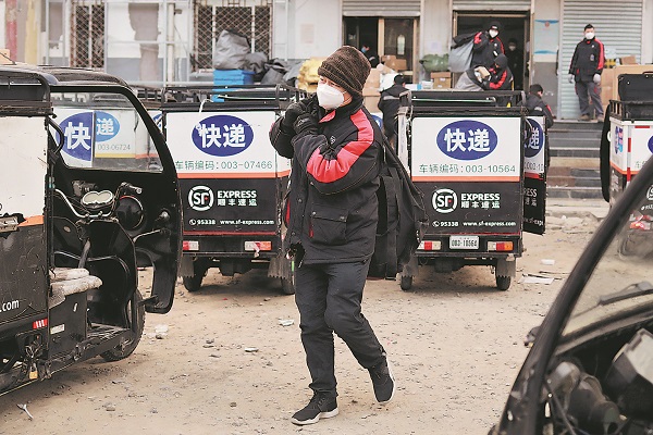 王守伟觉得,这些都不算苦,最难的是雨雪天,车子经常堵在路上一动不动,配送时要打伞又要保护好快递,很不方便。遇到个别小区不让进入,王守伟就将快递捆绑到小拖车上,往返几次送到驿站,“多跑几趟倒不怕,就怕车停在路边被贴罚单,这一天就白忙活了。”