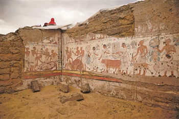 这是在埃及首都开罗以南的塞加拉地区拍摄的陵墓内的壁画。