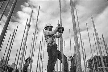 10月28日,江西省赣州市大余县硬质合金产业园,工人们正在抢抓进度,推进园区内科创服务中心建设。近年来,大余县聚焦打造承接粤港澳大湾区汽车配件和钨极有色金属新材料产业基地目标,不断强化载体平台的软硬件建设,推动工业发展形成龙头带动、集群发展、整体跃升的良好格局。吴寿生 摄/人民图片