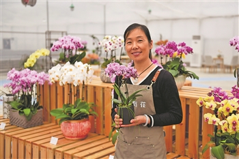11月3日,在双浦镇一家现代农业产业园,工作人员展示一盆蝴蝶兰。