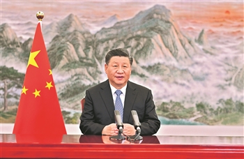 11月4日晚,国家主席习近平以视频方式出席第四届中国国际进口博览会开幕式并发表题为《让开放的春风温暖世界》的主旨演讲。新华社记者 李学仁 摄
