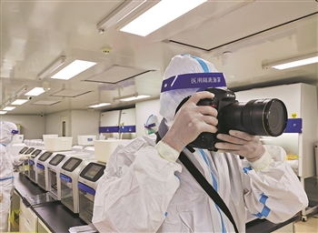 2021年8月7日,《长江日报》记者史伟在武汉“火迪”实验室采访拍摄工作人员进行核酸检测。受访者供图
