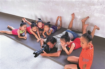 2021年8月4日,《内江日报》记者王斌在四川省内江市少年儿童业余体校体操训练馆釆访拍摄。受访者供图