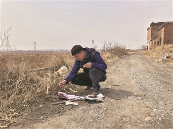 2021年3月13日,《新京报》记者李英强在河北铁矿瞒报死亡事故现场调查采访。关山 摄