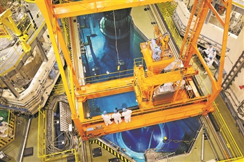 11月6日,“华龙一号”示范工程第2台机组——中核集团福清核电6号机在装载第一组燃料。当日,该机组进入主系统带核调试阶段,向建成投产迈出重要一步。新华社发