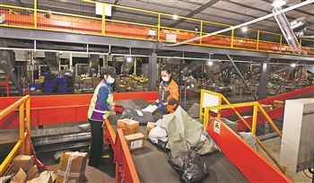 “双11”即将来临之际,圆通速递海口转运中心一派繁忙景象。工作人员借助分拣设备加紧作业,保障“双11”高峰期间物流正常运转。新华社记者