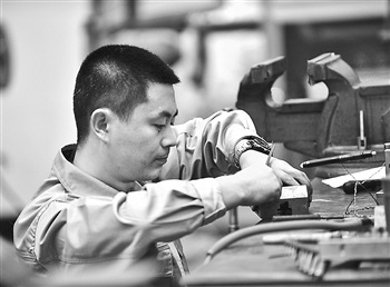 汽车外表零件都是靠模具冲压出来的,模具质量直接影响着汽车质量,而模具的精度以“道”计算,一道等于0.01毫米。“模具维修的最小间隙是两道,也就是头发丝直径的1/3。在灯泡上练习切钢丝,可以说是练就模修绝活的必修课。”一汽—大众模具维修工牟少志,就有一手这样在“灯泡上切钢丝”的硬功夫。