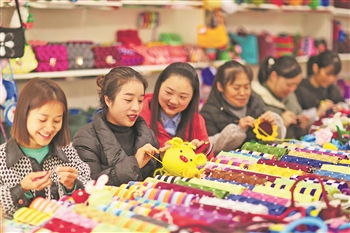 初冬时节,长期镇的返乡青年、留守妇女在家忙着做刺绣、钩织手工艺品、手提包、绒鞋等产品,到处是一派“冬闲人不闲”的忙碌景象。近年来,长期镇实施“党建引领+巾帼巧手”工程,免费对返乡女青年、易地扶贫搬迁留守妇女进行培训,拓宽增收渠道。新华社发 (杨洋 摄)