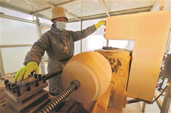 11月17日,在饶阳县好望角民族乐器产业园一家企业的车间内,工人在加工鼓。新华社记者 王民 摄