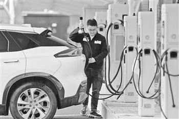 中国汽车工业协会统计数据显示,2014~2020年,我国新能源汽车销量从7.5万辆上升至136.7万辆。在行业实现跨越式发展的同时,新能源汽车充电时间长、续航里程短的问题也凸显出来,消费者对充电设备、换电设备和电池回收需求持续激增。为此,充电桩企业迎来红利期。天眼查数据显示,目前我国有超16万家充电桩相关企业。截至2021年10月,我国新增超过5万家企业,同比增长121%。 穆明飞 摄/人民图片