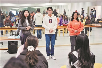 图为12月1日,北京邮电大学辅导员王聪(左一)为志愿者讲解形象礼仪课程。