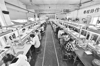 12月1日,工人在广西融水苗族自治县苗家小镇小区的粤桂扶贫车间生产电子配件。今年,广东廉江市和广西融水苗族自治县进一步开展粤桂帮扶活动,聚焦巩固拓展脱贫攻坚成果与乡村振兴有效衔接,突出抓好产业、劳务、消费、人才以及社会事业等方面帮扶协作。