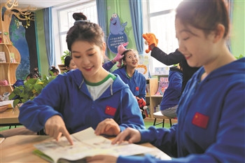 11月25日,北京市昌平职业学校,学前教育专业学生正在上幼儿口语课程。