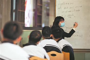 11月25日,北京市昌平职业学校,中餐烹饪专业高一学生在上数学课。