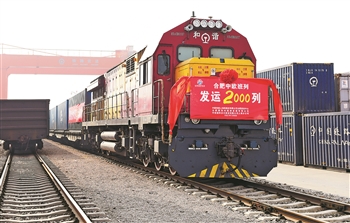本报讯(记者陈华 通讯员席静玉)12月8日上午10时,在中国铁路上海局集团合肥货运中心北站物流基地,满载着安徽本土生产制造的白色家电的中欧班列整装完备,即将经二连浩特口岸一路向北,驶往俄罗斯沃尔西诺。此趟班列的发运标志着合肥中欧班列自开行以来累计发送突破2000列。