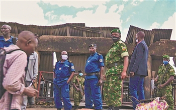 12月7日,警察和军人聚集在布隆迪基特加省基特加中心监狱。布隆迪中部基特加省的基特加中心监狱7日发生火灾,布隆迪副总统巴宗班扎当天在视察火灾现场后说,这场火灾造成38名囚犯死亡,另有69人受伤。 新华社发