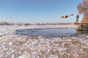 12月7日,在松花江哈尔滨段一冬泳池,冬泳爱好者跃入水中。当日是“大雪”节气,“冰城”哈尔滨的冬泳爱好者们破冰开池、畅游松花江,锻炼身体的同时尽享冬趣。