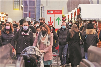 12月11日,人们在比利时布鲁塞尔市中心逛圣诞市场。近日,比利时日均新增新冠确诊病例超过1.5万例,加上变异新冠病毒奥密克戎毒株来袭,防疫形势仍然严峻。新华社记者 郑焕松 摄
