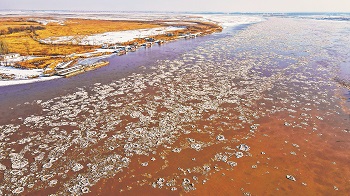 近日,随着气温下降,黄河内蒙古段出现流凌景观。